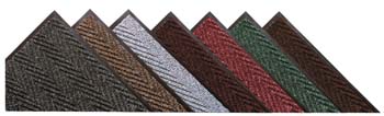 A very popular carpet design, Chevron has multi-directional raised ribs which brush debris from shoes regardless of traffic flow. Debris gets trapped in the trenches until mat is cleaned. Vinyl backing and borders helps reduce mat movement.