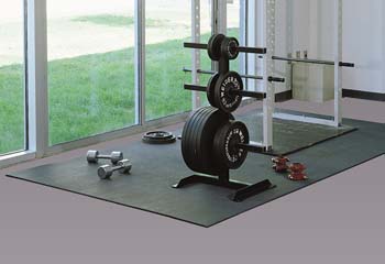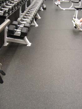 These tiles are precision cut and used to create a full interlocking system. Tiles fit together perfectly and lie flat without curling. Tiles can be used to create a sectional matting area or a wall-to-wall matting surface. These non-porous, indestructible rubber mats have textured surfaces and are excellent for use under heavy workout equipment, such as treadmills, stationery bikes, and weight-lifting machines. They shield the floor from damage while protecting machines and exercise equipment from vibration and carpet fibers, which can biuld up within the equipments' moving mechanisms.