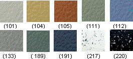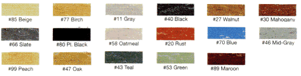 Colors: (05)Stone, (06)Diablo Red, (09)Clay, (15)Cabernet, (20)Charcoal, (28)Medium Gray, (33)Adobe Peach, (40)Black, (42)Sable, (45)Sandalwood, (47)Brown, (48)Gray, (49)Beige, (58)Windsor Blue, (59)Heather Green, (60)Taupe, (74)Iris, (75)Lemon, (80)Fawn, (92)Blue Lagoon. Other colors available.